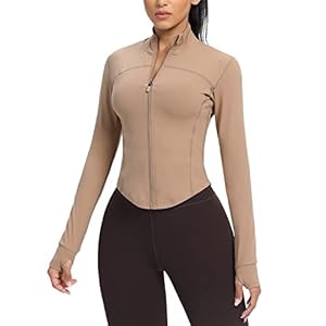 AVGO Women’s Cropped Running Workout Jackets Zip Slim Fit Athletic Tops with Thumb Holes