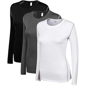 WANAYOU Women’s 2-3 Pack Compression Shirt Dry Fit Long Sleeve Running Athletic T-Shirt Workout Tops