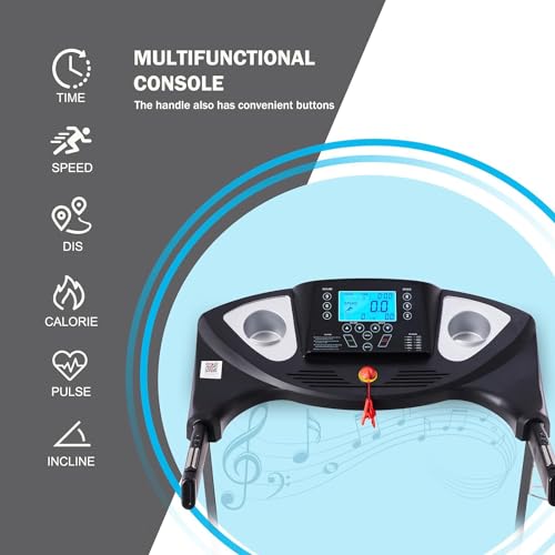 Treadmill with 12% Auto/Manual Incline and Bluetooth Speaker, 2.5HP Folding Treadmill Up to 8.5 MPH Speed, 18" Wide Running Machine with 15 Programs LCD Display for Home Use, 300 LBS Capacity $389.99