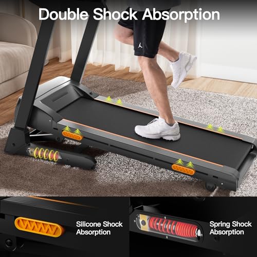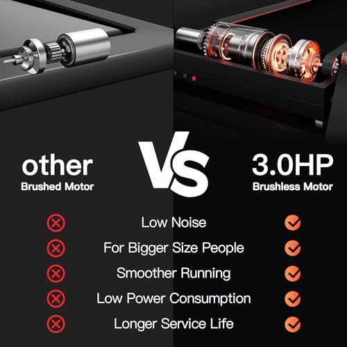 【Powerful & Quiet Brushless Motor】Our folding treadmill features a powerful 3.0HP brushless motor, offering smooth operation with a maximum speed of 9MPH and a weight capacity of up to 300LBS. Enjoy longer-lasting performance and environmental friendliness, all with noise levels as low as 45-60 dB for a peaceful workout experience.