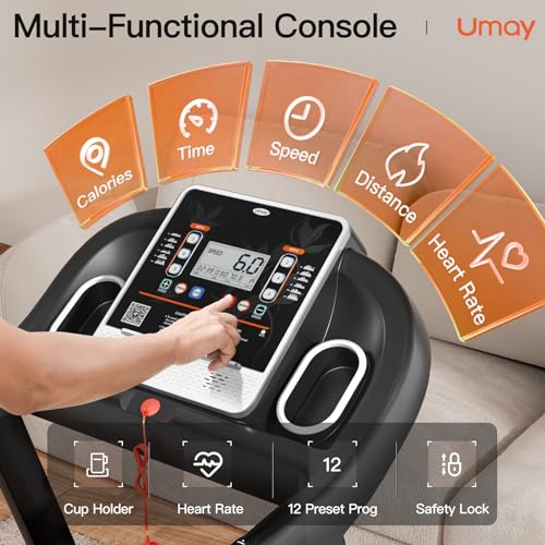 Home Shop Cardio Training Treadmills UMAY Foldable Treadmill with Auto Incline, Quiet Treadmills for Home, 12 Preset Programs, 3.0 HP, 9 MPH, 300lbs Capacity