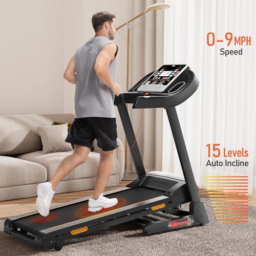 UMAY Foldable Treadmill with Auto Incline, Quiet Treadmills for Home, 12 Preset Programs, 3.0 HP, 9 MPH, 300lbs Capacity