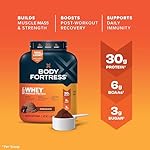Packaging May Vary. Formula remains unchanged. 1 scoop contains 30g of protein. 2 scoops contain 60g of protein. This is your body. It’s the only one you’ve got, so give it the best with Body Fortress 100% Premium Whey Protein Powder. ǂ ◊ Not only does this no-nonsense formula offer 30 grams of protein and 6 grams of BCAAs (per scoop) to help dedicated athletes train harder and recover faster, but it also contains vitamins C & D plus Zinc to support daily immunity. ◊ Enjoy the creamy, delicious flavor of 100% Whey as it mixes perfectly into your go-to shake or smoothie! ◊ Disclaimers: ǂ 100% of Protein from Whey ◊These statements have not been evaluated by the Food and Drug Administration. This product is not intended to diagnose, treat, cure or prevent any disease